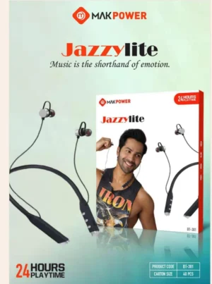 The MAKPOWER JAZZY LITE Bluetooth headset features a sleek design with aluminum construction and 200mAh battery. Enjoy 24 hours of talk time and 48 hours of standby time with a 10m transmission distance.