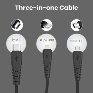 The Portronics Konnect A Trio cable is a versatile 3-in-1 charging cable that supports micro USB, iOS, and Type C devices. It offers fast charging, universal compatibility, durability, and smart device protection in a 1.5-meter stretchable cord.
